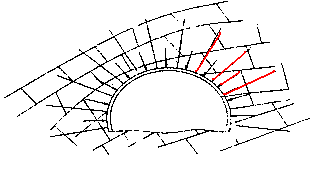 隧道是有一定圓弧形狀的,有圓弧,那就有直徑、半徑這些,所謂徑向也就是說(shuō)是按照直徑的方向來(lái)進(jìn)行鉆孔,如下圖所示: