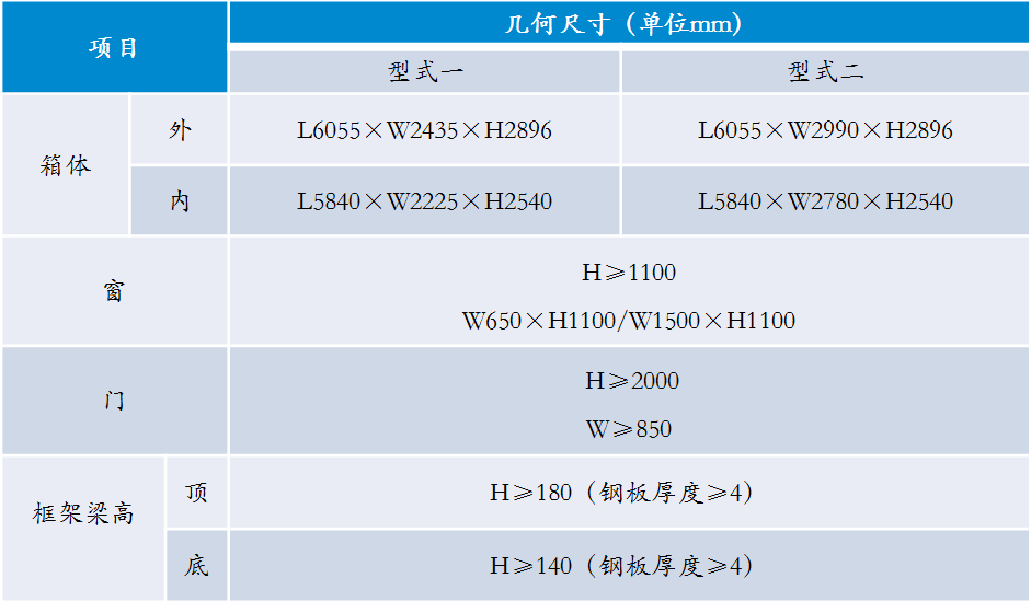 表7.3 標(biāo)準(zhǔn)化箱式房幾何尺寸(建議尺寸)