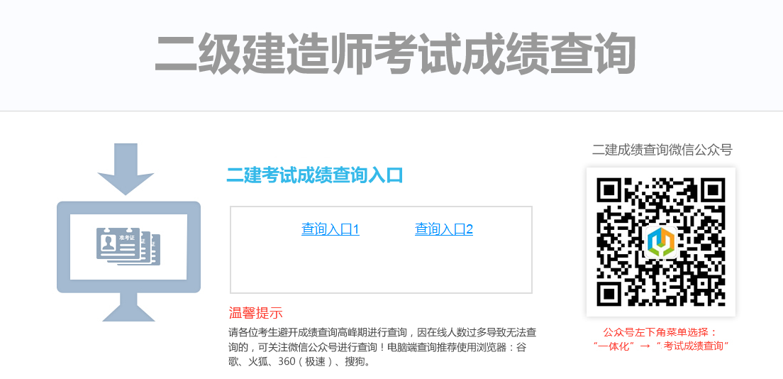 云南二建成績?nèi)肟冢簽閮蓚€查詢?nèi)肟冢顚懖樵儣l件即可查詢。另有微信公眾號可查詢云南二建成績
