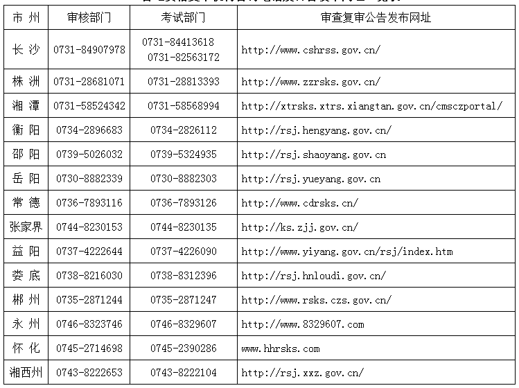 市州要及時(shí)在相關(guān)網(wǎng)站進(jìn)行公示資格復(fù)審結(jié)果,接受舉報(bào)查實(shí);資格審查通過的人員請(qǐng)關(guān)注“湖南人事考試網(wǎng)()”和市州網(wǎng)站上的證書發(fā)放公告,按公布的時(shí)間和地點(diǎn)領(lǐng)取資格證書和相關(guān)表格。