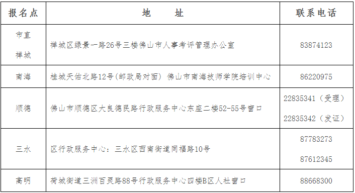 網(wǎng)上報(bào)名時(shí)選擇“佛山報(bào)名點(diǎn)”的考生,請(qǐng)于2016年9月5日至9日(工作日上午8:30-12:00,下午2:00-5:30),自主選擇佛山市人事考評(píng)管理辦公室或各區(qū)考試機(jī)構(gòu)(詳細(xì)地址及聯(lián)系方式請(qǐng)見(jiàn)附件)提交資料。