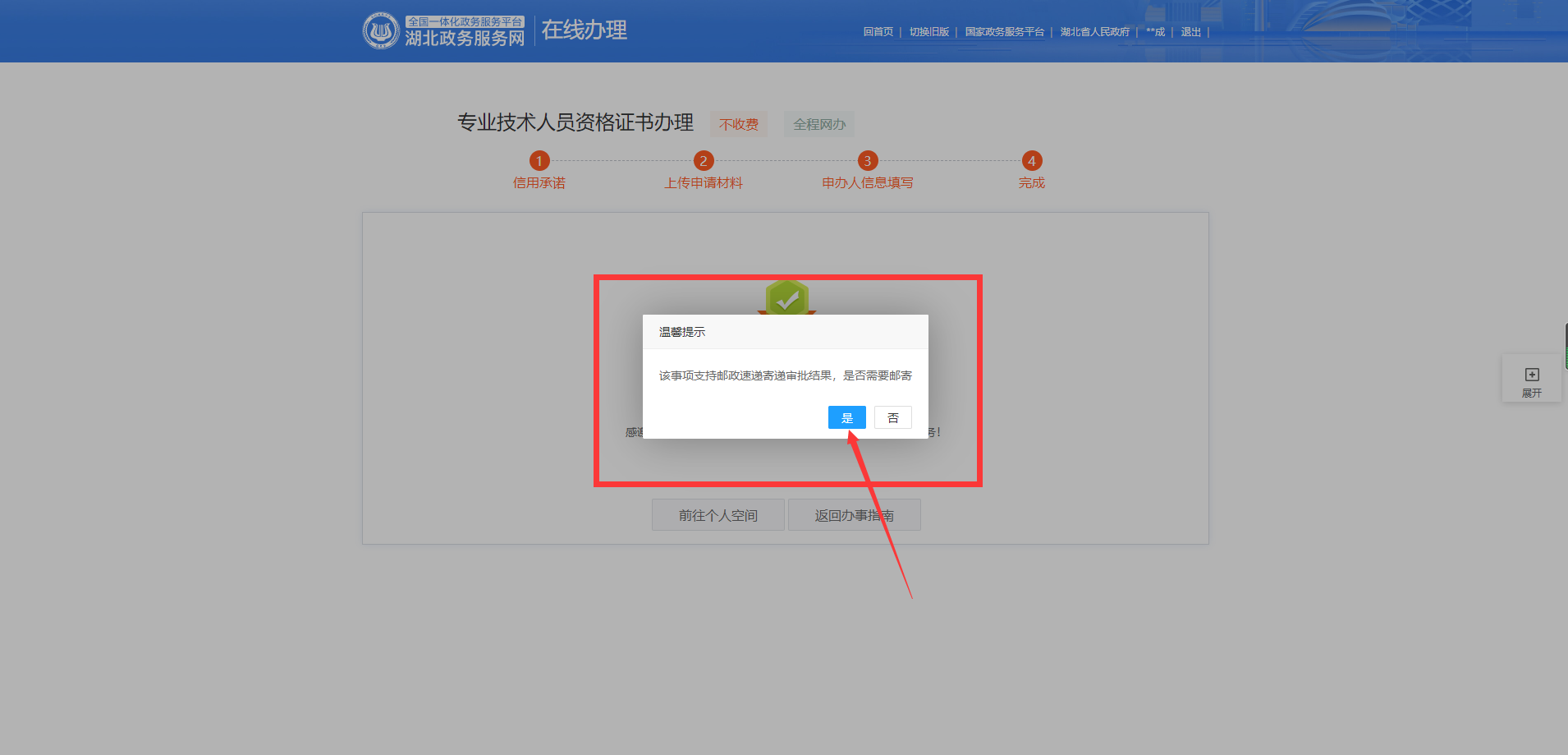 8.特別提醒:證書(shū)如需郵寄,請(qǐng)?jiān)跍剀疤崾緳谀窟x擇是,否則證書(shū)無(wú)法郵寄。