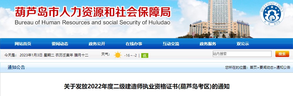 關(guān)于發(fā)放2022年度二級建造師執(zhí)業(yè)資格證書(葫蘆島考區(qū))的通知
