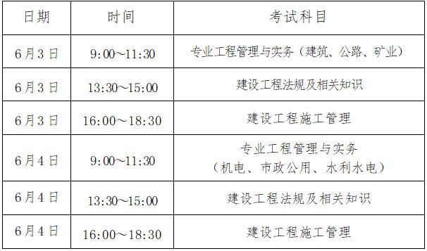 海南省2023年二級建造師考試時(shí)間已公布,海南2023年二建考試時(shí)間為:6月3、4日。各科目具體考試時(shí)間如下: