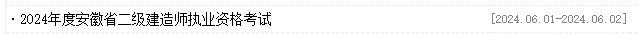 安徽省人事考試網(wǎng)發(fā)布2024年度專業(yè)技術(shù)人員職業(yè)資格考試工作計劃,確定2024年二級建造師考試時間為2024年6月1-2日。詳情如下:
