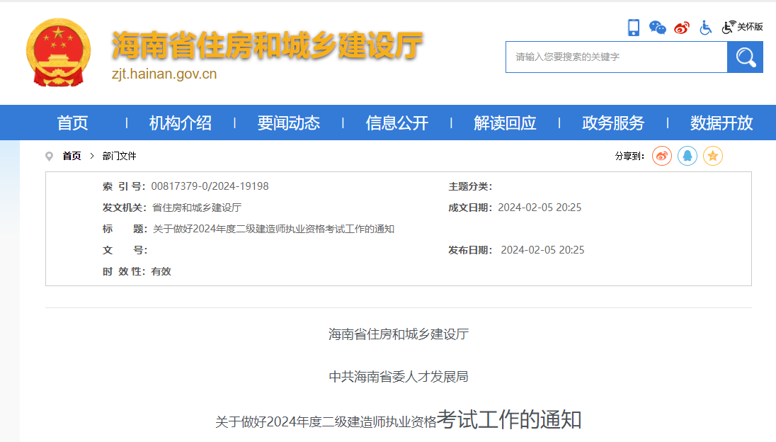 海南省發(fā)布關(guān)于做好2024年度二級建造師執(zhí)業(yè)資格考試工作的通知