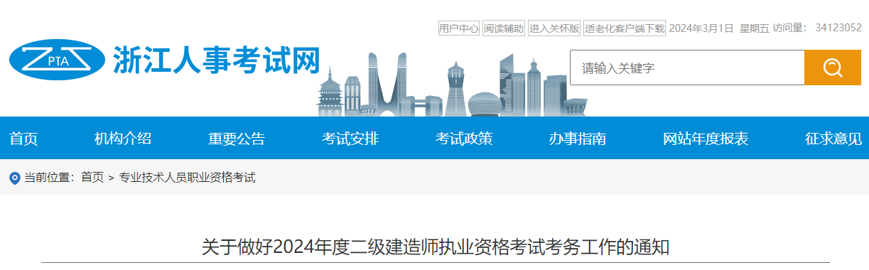 關(guān)于做好2024年度浙江二級建造師執(zhí)業(yè)資格考試考務(wù)工作的通知