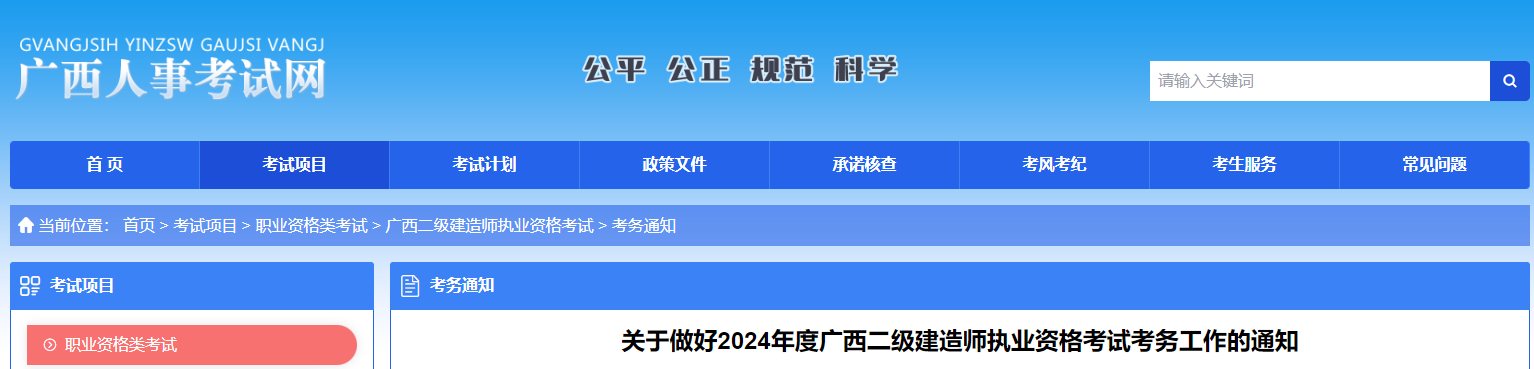 根據(jù)《廣西壯族自治區(qū)人事廳廣西壯族自治區(qū)建設(shè)廳關(guān)于印發(fā)〈二級建造師執(zhí)業(yè)資格制度暫行規(guī)定〉和〈二級建造師執(zhí)業(yè)資格考試實施辦法〉的通知》(桂人發(fā)〔2005〕68號)精神,為做好2024年度廣西二級建造師執(zhí)業(yè)資格考試考務(wù)工作,現(xiàn)將有關(guān)事項通知如下: