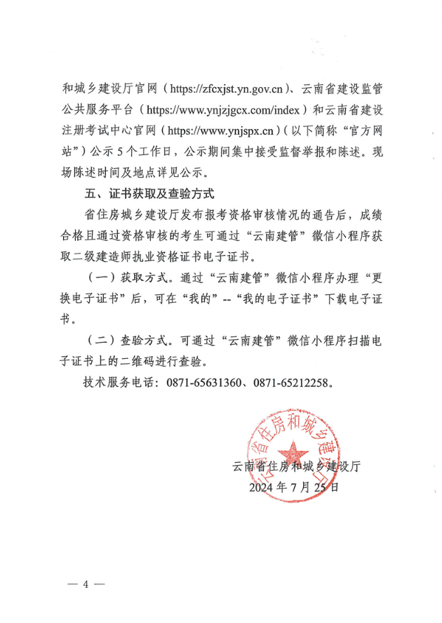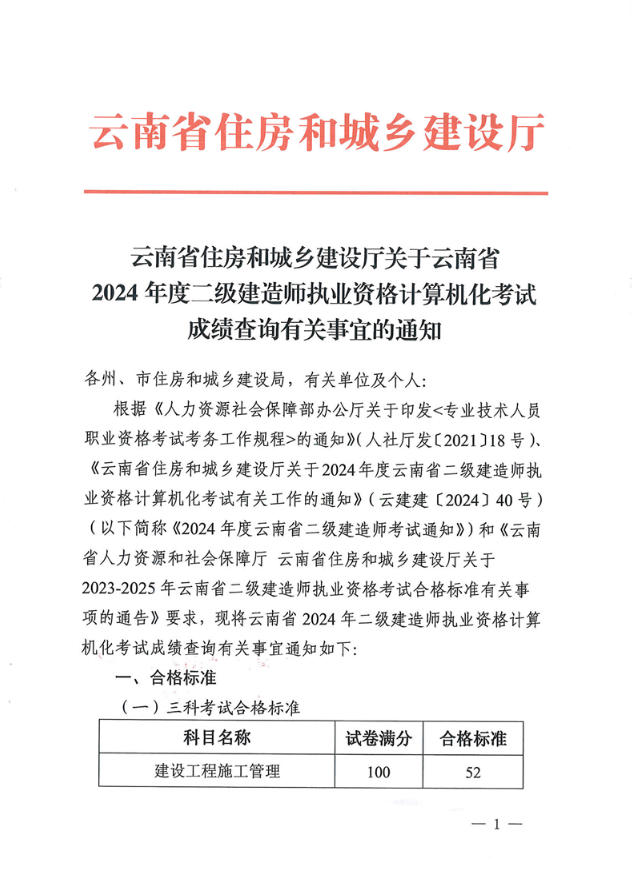 云南省住房和城鄉(xiāng)建設(shè)廳關(guān)于云南省2024年度二級建造師執(zhí)業(yè)資格計算機化考試成績查詢有關(guān)事宜的通知
