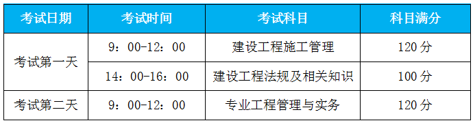 2021年二級建造師考試時(shí)間、考試科目、各科滿分