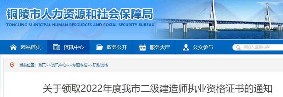 安徽銅陵市?關于領取2022年度我市二級建造師執(zhí)業(yè)資格證書的通知