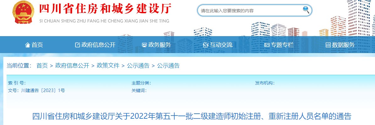 四川省住房和城鄉(xiāng)建設廳關于2022年第五十一批二級建造師初始注冊、重新注冊人員名單的通告