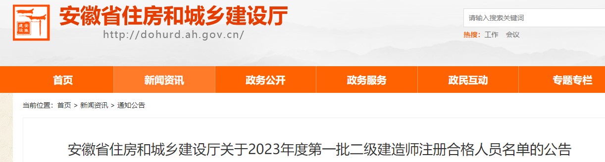 安徽省住房和城鄉(xiāng)建設(shè)廳關(guān)于2023年度第一批二級(jí)建造師注冊(cè)合格人員名單的公告
