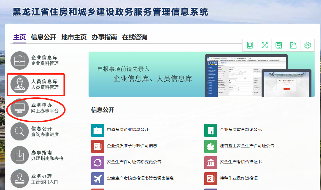 政務(wù)服務(wù)管理信息系統(tǒng)(http://219.147.76.5:7507/Default.aspx),人員信息庫需持個人CA鎖登錄,用于完善人員基礎(chǔ)信息、確認(rèn)在職單位信息。然后方可進(jìn)行業(yè)務(wù)辦理。