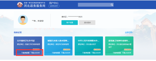第三步:進(jìn)入用戶中心后,在“我的證照”欄目,按需選擇相應(yīng)電子證書進(jìn)行下載。特別提示:需要先下載OFD閱讀器并安裝,再下載OFD證書文件。閱讀器下載鏈接如下: