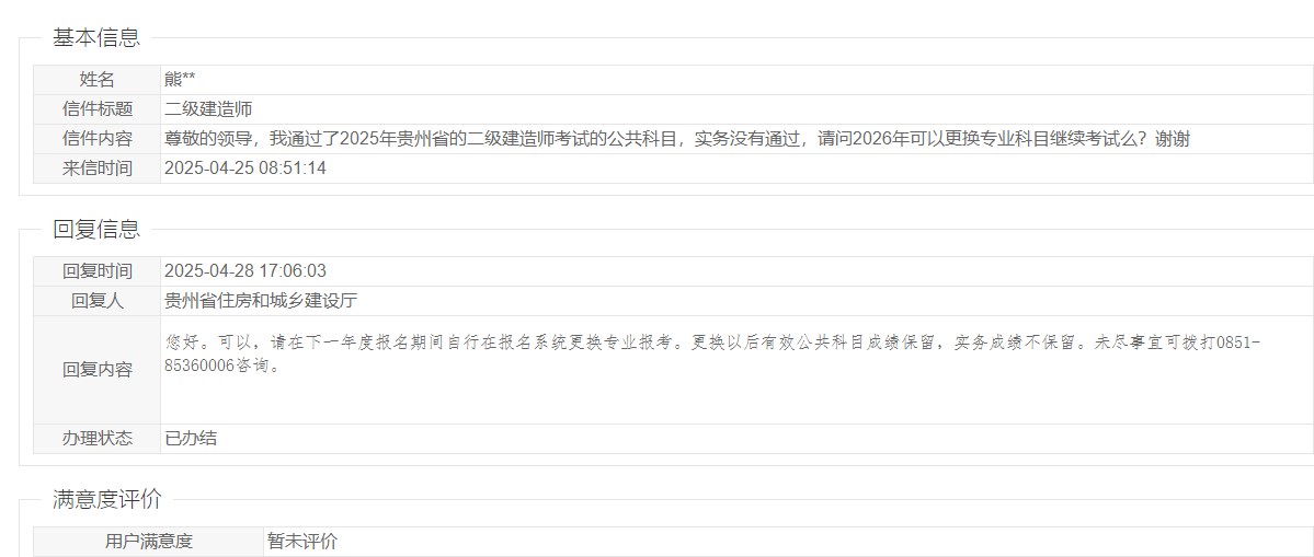 貴州省二級建造師更換專業(yè)科目考試,會保留公共科目成績