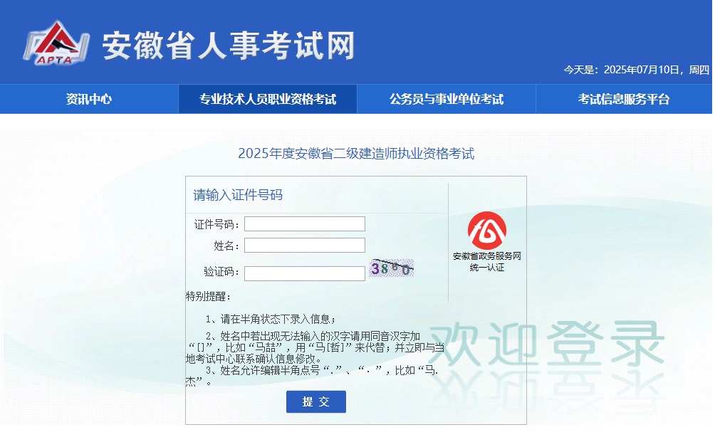 2025年安徽二級(jí)建造師考試成績(jī)查詢時(shí)間:2025年7月10日起