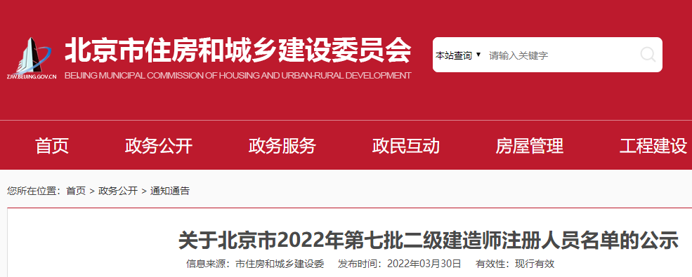關(guān)于北京市2022年第七批二級(jí)建造師注冊(cè)人員名單的公示