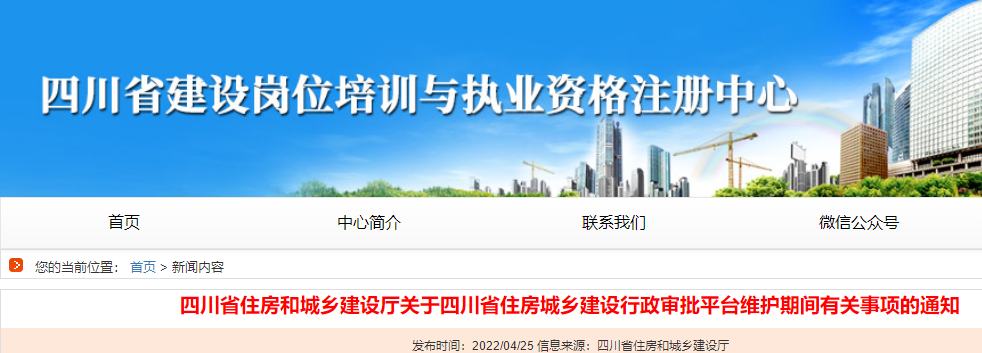 關(guān)于四川省住房城鄉(xiāng)建設(shè)行政審批平臺(tái)維護(hù)期間有關(guān)事項(xiàng)的通知