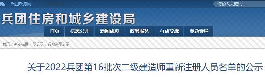 關(guān)于2022兵團(tuán)第16批次二級建造師重新注冊人員名單的公示