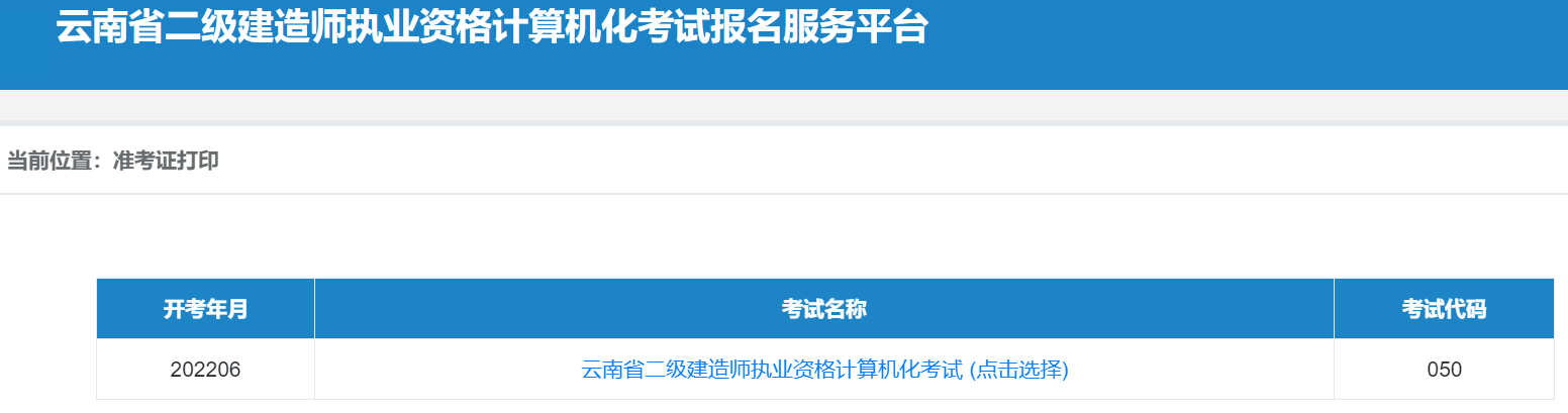 云南2022年二級(jí)建造師準(zhǔn)考證打印入口: