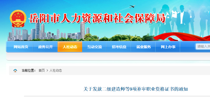 岳陽(yáng)市關(guān)于發(fā)放二級(jí)建造師補(bǔ)審職業(yè)資格證書的通知
