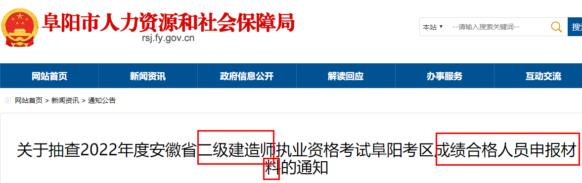抽查2022年安徽二級(jí)建造師考試阜陽考區(qū)成績合格人員申報(bào)材料的通知