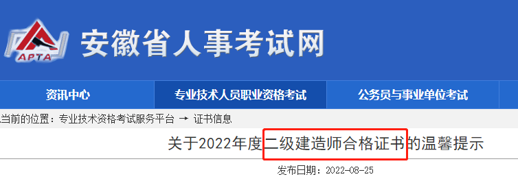安徽關(guān)于2022年度二級建造師合格證書的溫馨提示