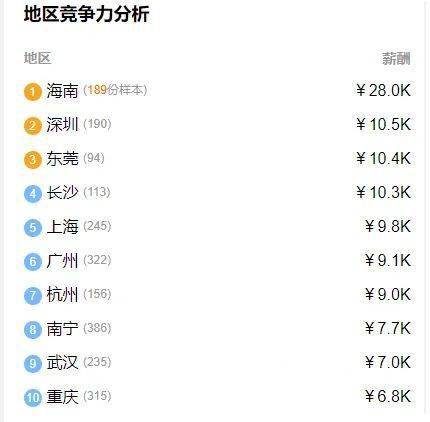 以下是7地的薪酬抽樣統(tǒng)計,具體薪資請以實際情況為準。