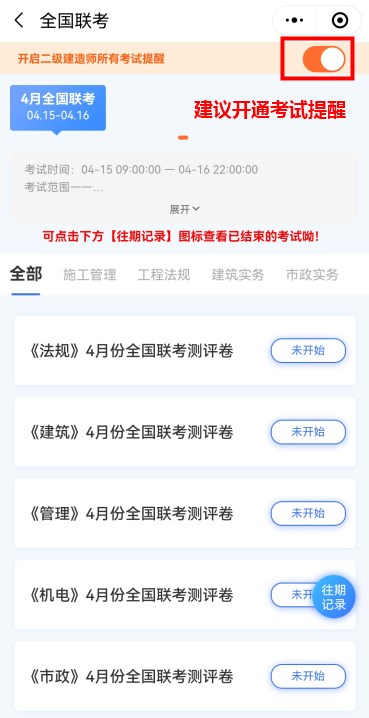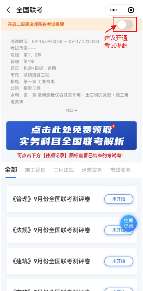 建議開通考試提醒,避免錯過二建考試。