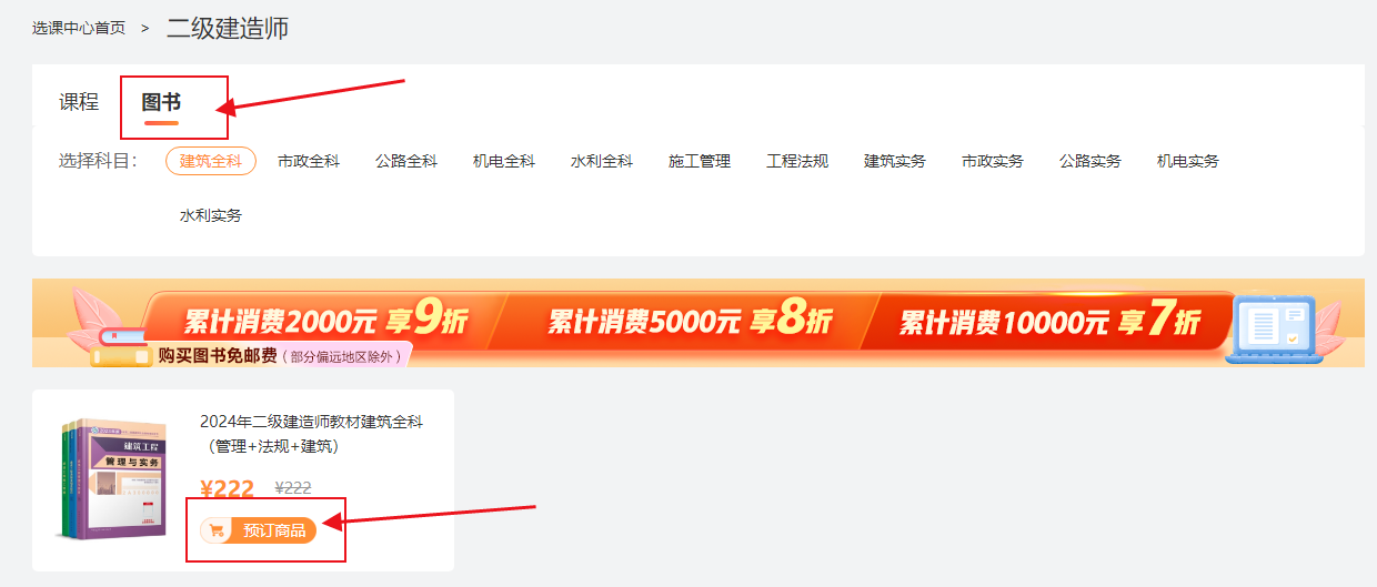 電腦端預(yù)定/購買方式:建設(shè)工程教育網(wǎng)(m.mm34228.com)首頁【選課中心】→選擇【二級建造師】→選擇【圖書】