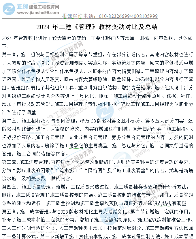 2024年二級(jí)建造師施工管理教材變動(dòng)詳解