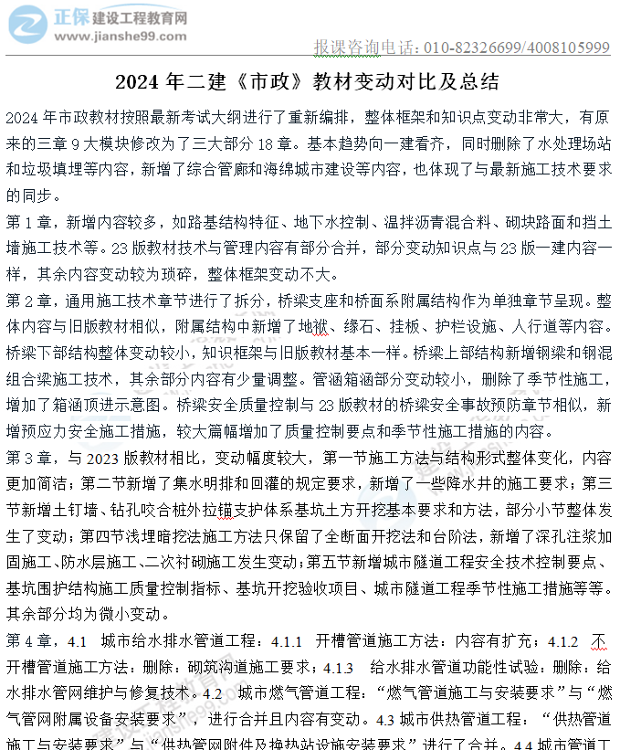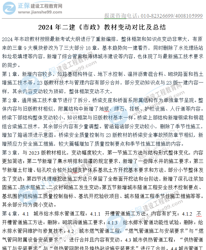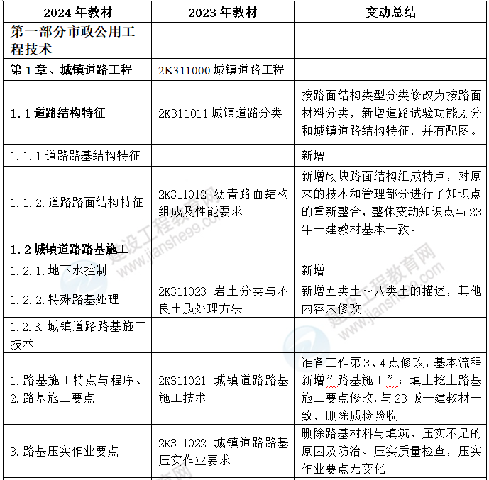 2024年二級(jí)建造師市政實(shí)務(wù)教材變動(dòng)詳解