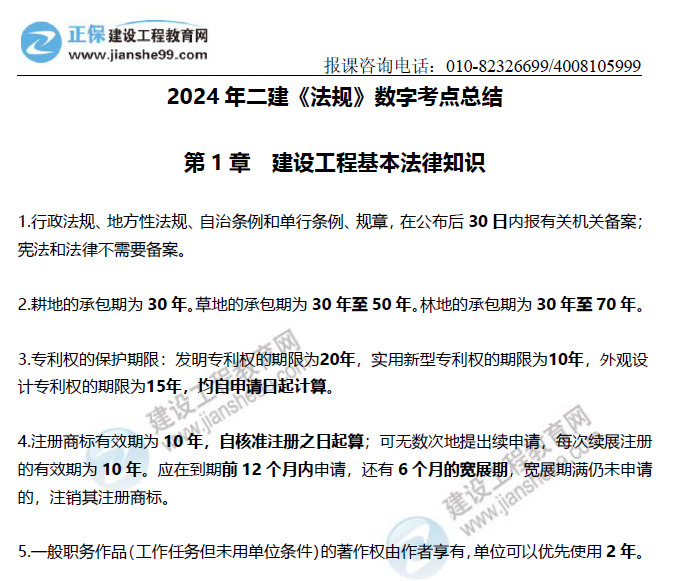 《2024年二建《法規(guī)》數(shù)字考點總結(jié)》