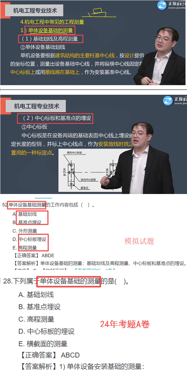 考點(diǎn)詳解:1)單體設(shè)備安裝基礎(chǔ)的測(cè)量: