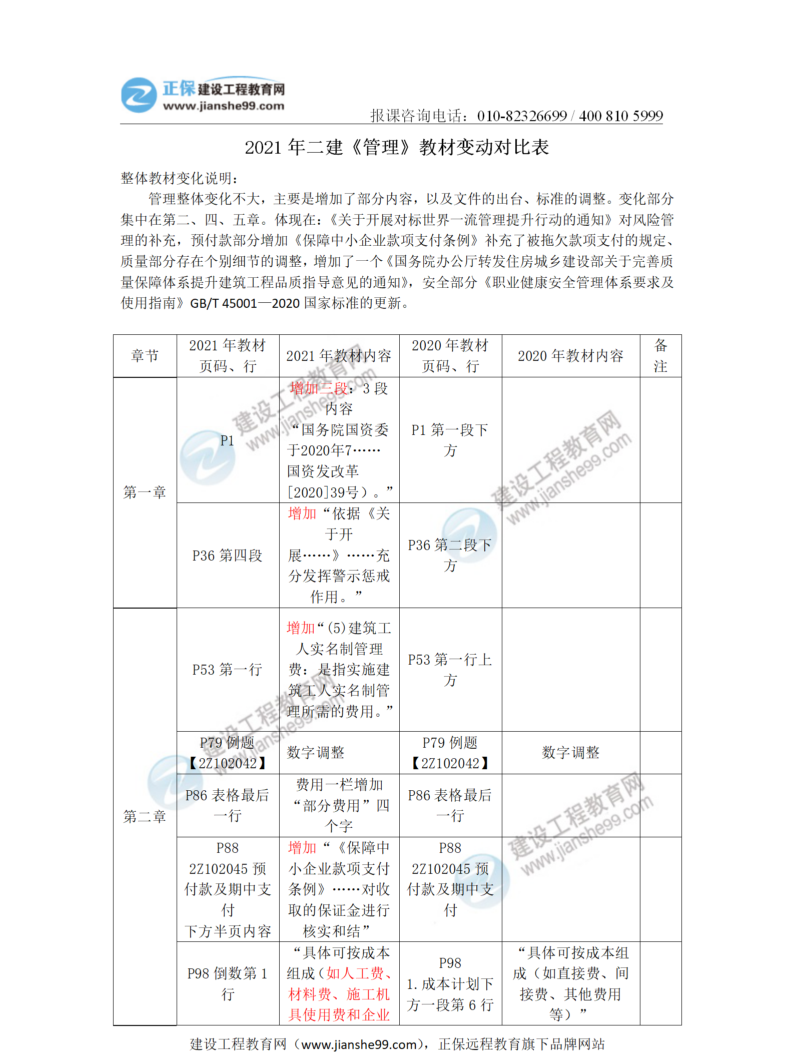 2021年二級建造師《施工管理》教材變動對比表