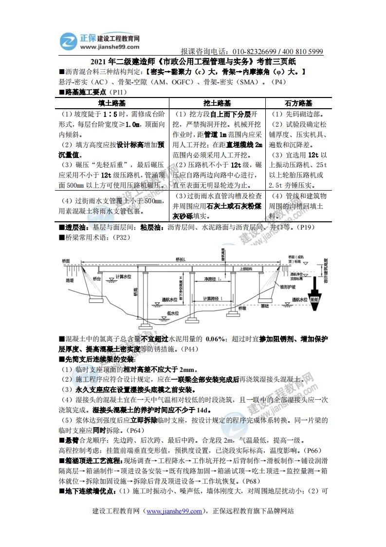 2021年二級建造師市政實(shí)務(wù)考前三頁紙