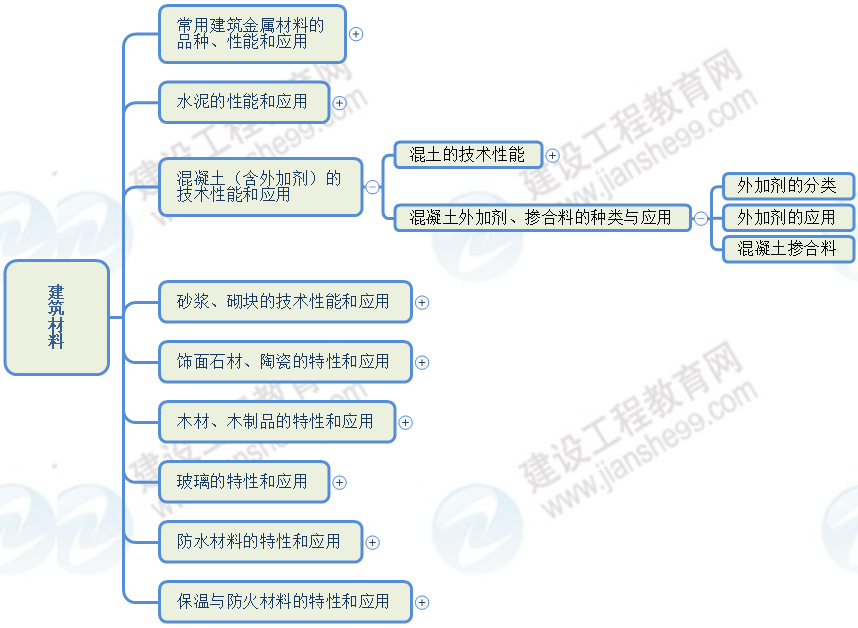 2022二建建筑:混凝土外加劑、摻合料的種類與應(yīng)用(思維導(dǎo)圖)