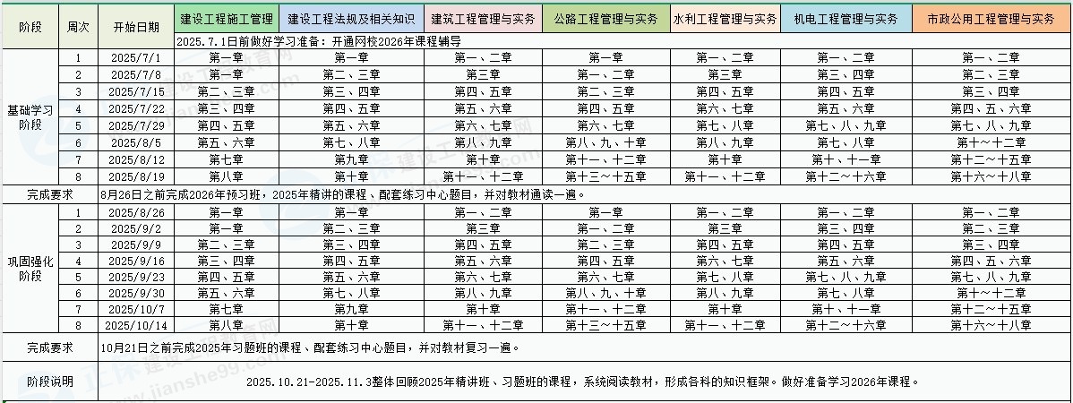 贏在起點:2026年二建預(yù)習(xí)計劃表來了