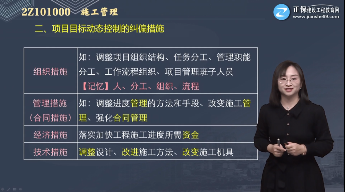 【考點(diǎn)精講】二建施工管理:項(xiàng)目目標(biāo)動(dòng)態(tài)控制的糾偏措施