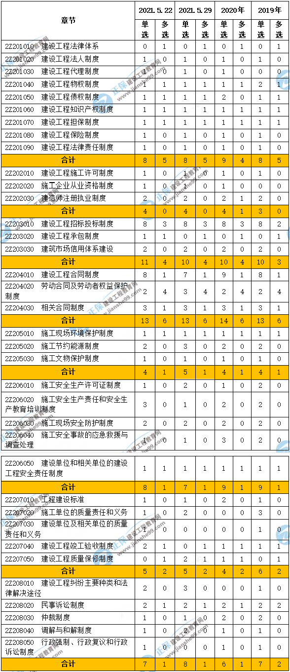 近三年二級(jí)建造師工程法規(guī)考試分值分布詳情!
