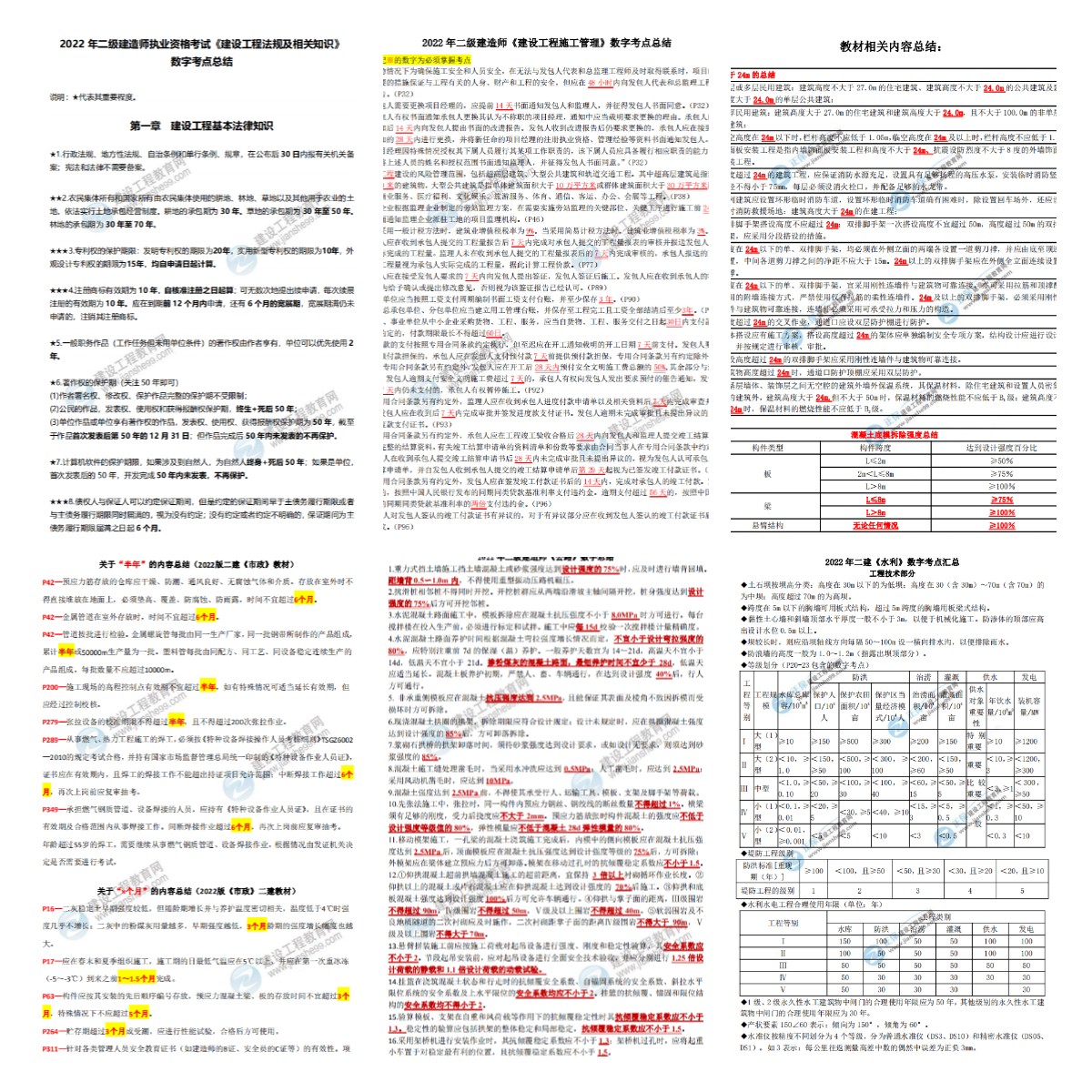 2022二級(jí)建造師數(shù)字考點(diǎn)總結(jié)(6個(gè)科目部分截圖)