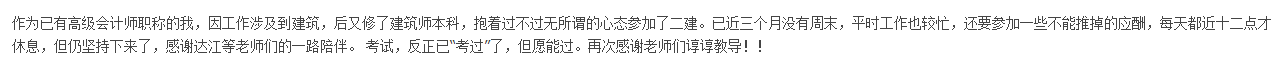 備戰(zhàn)2019年二級建造師考試的朋友們,加入建設(shè)工程教育網(wǎng),跟著老師取證輕松!查看完整學(xué)員留言>>