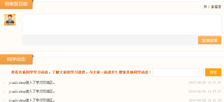 ▼另外您還可以看到同一個(gè)班級(jí)其他人員學(xué)習(xí)的時(shí)長(zhǎng)和學(xué)習(xí)進(jìn)度,而且同班學(xué)員之間可以相互交流學(xué)習(xí)經(jīng)驗(yàn),相互留言。