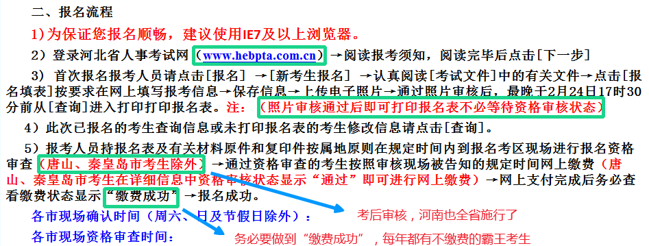 【報(bào)名流程】即使是同一個(gè)省份,各個(gè)地級市的報(bào)名流程也不同(此現(xiàn)象南方省份更為普遍,以江蘇最為顯著)。所以報(bào)名一定要認(rèn)真閱讀流程。