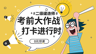 二級建造師已經(jīng)進(jìn)入沖刺備考階段,但很多考生都會反映時間不夠,二級建造師教材還未看,或者看了以后記不住,實務(wù)題反復(fù)出錯,怎么辦?這個時候建設(shè)工程教育網(wǎng)為你們貼心的準(zhǔn)備了2019年二級建造師考前搶分大作張,每天參與打卡贏取精品好課,既能學(xué)習(xí)知識,又能贏取禮品,這樣的好事你還在等什么!立即加入打卡隊伍>>