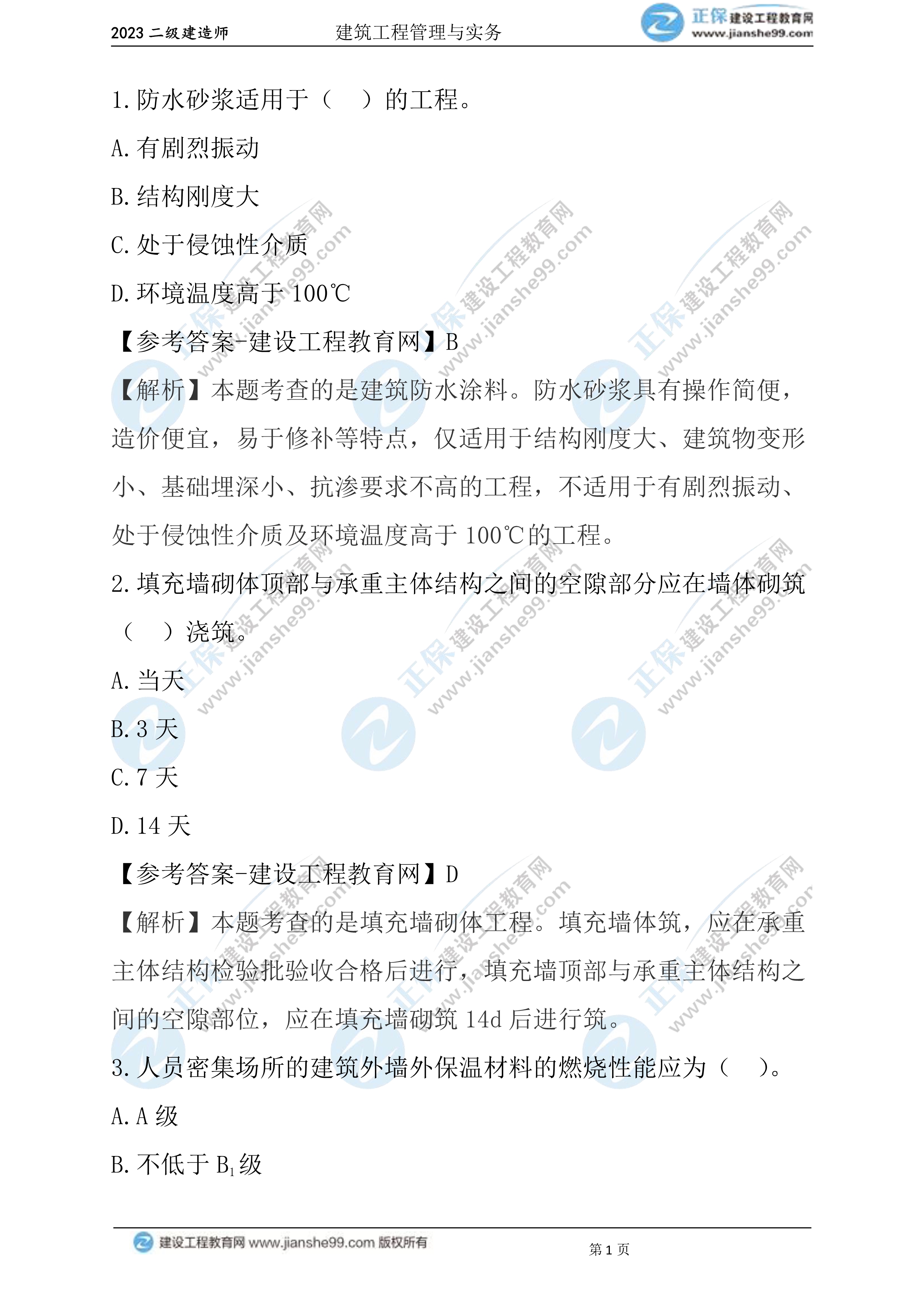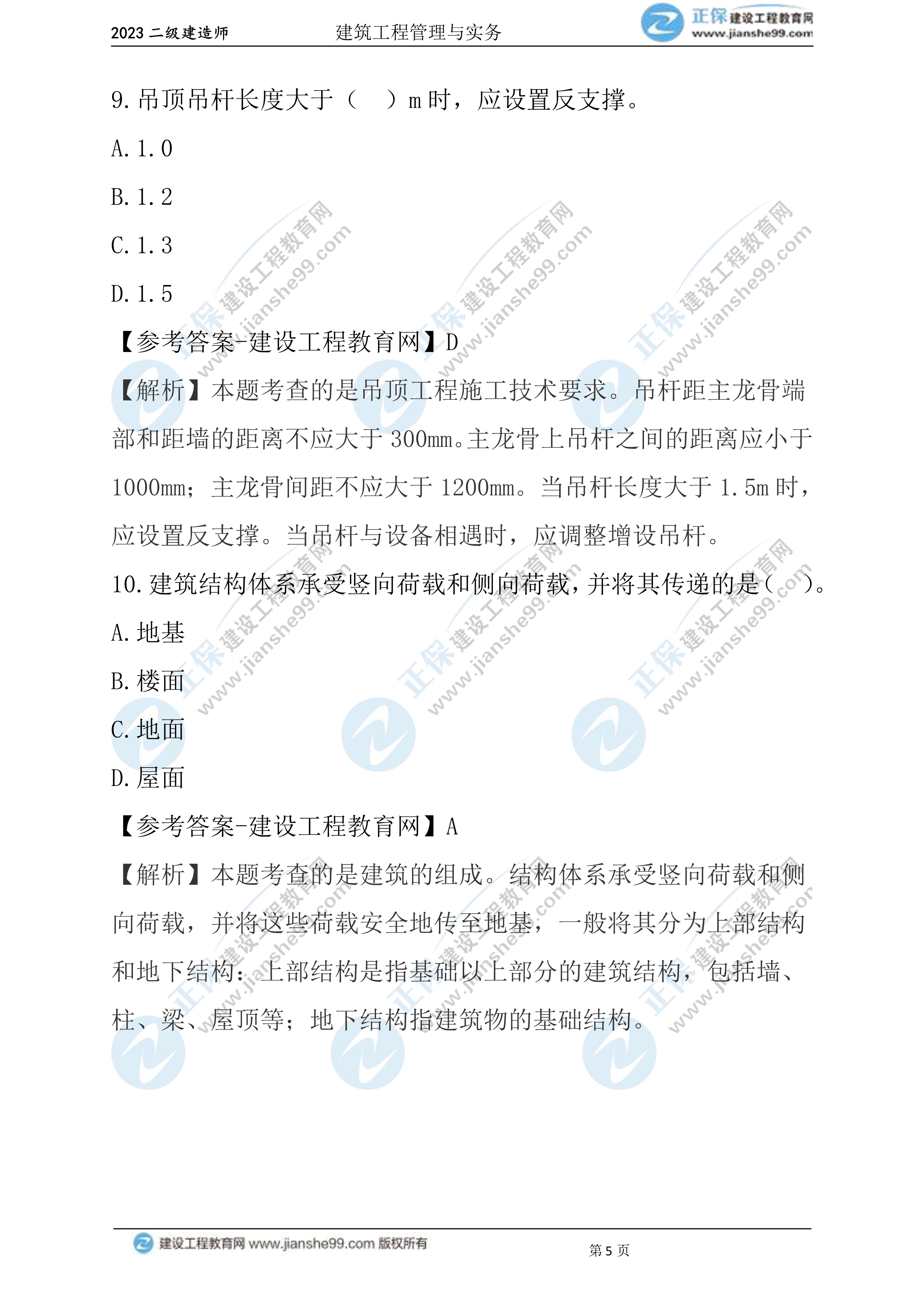 2023年二級建造師考試于6月3日、4日舉行,考試過后,廣大考生最關心的問題莫過于2023年二級建造師建筑實務真題及答案,建設工程教育網考后將會根據考生反饋,及時匯總2023年二級建造師建筑工程管理與實務真題及答案分享給大家。以下為2023年二級建造師建筑工程管理與實務1-10題真題及答案,希望能為廣大二建考生朋友帶來幫助。