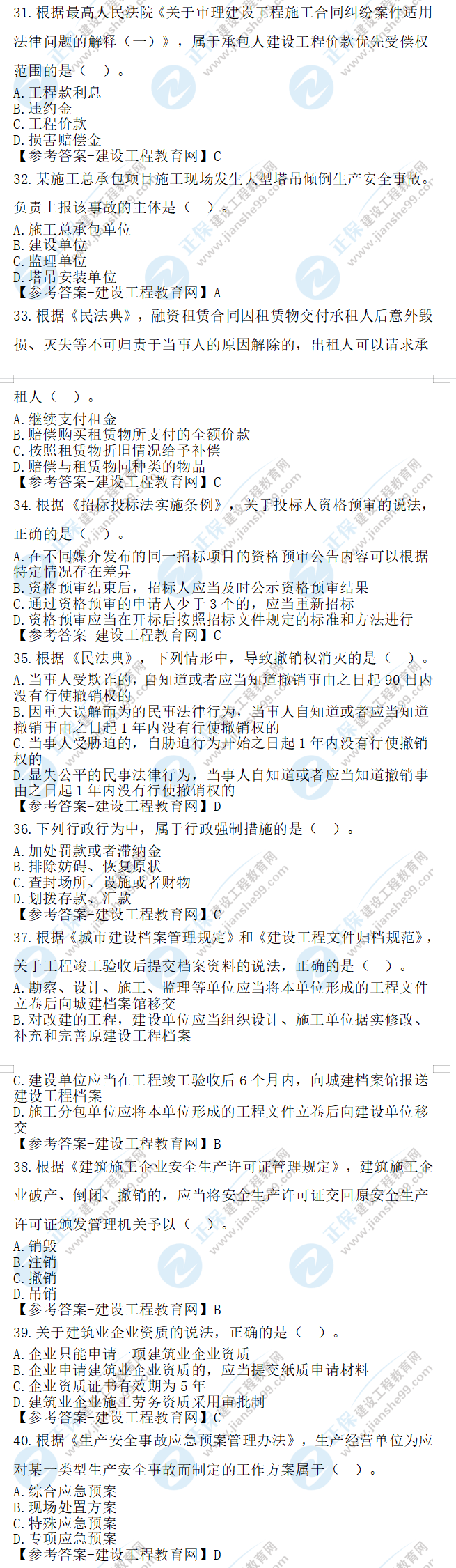2023年二級建造師工程法規(guī)真題及答案31-40