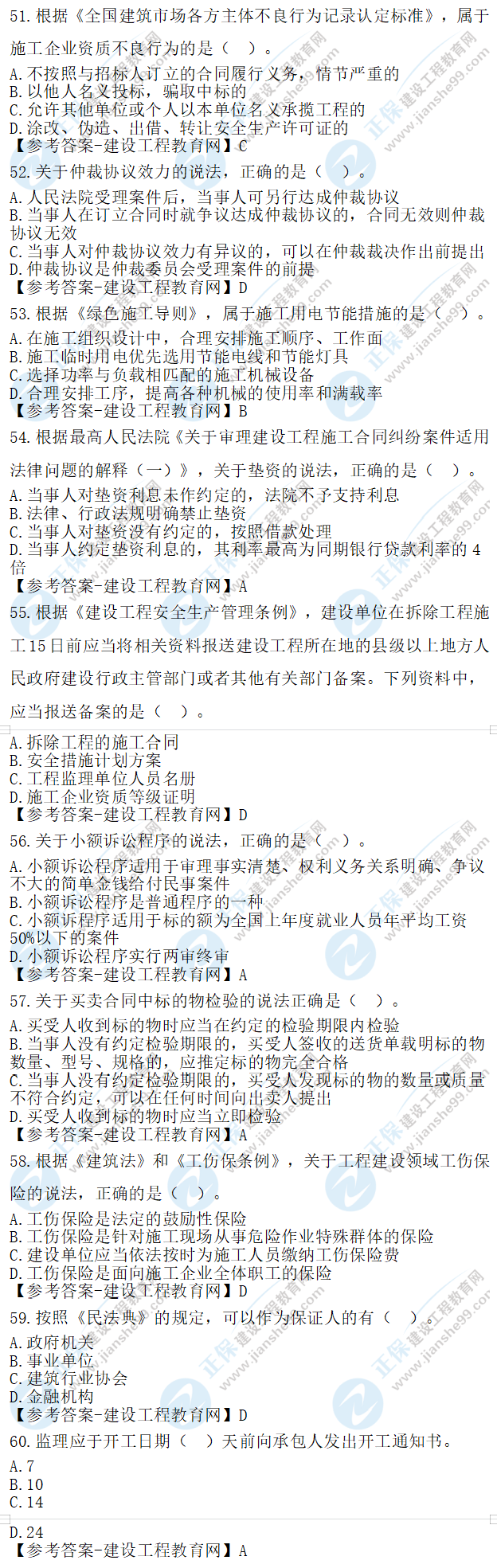 2023年二級建造師工程法規(guī)真題及答案51-60