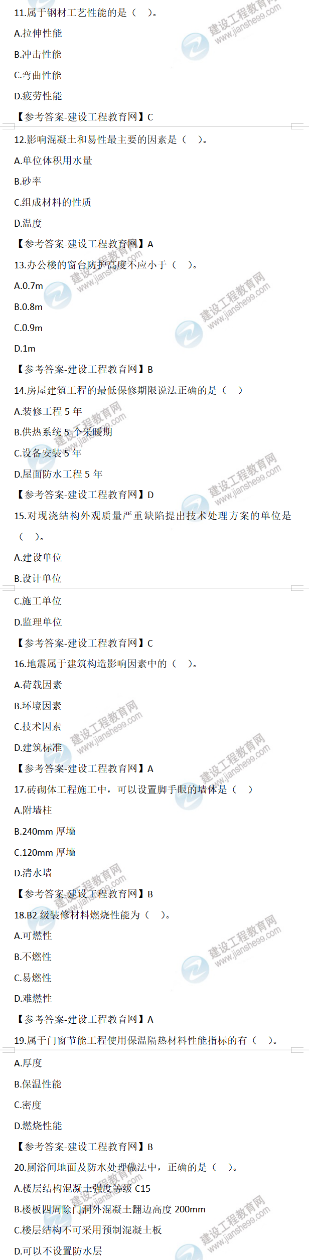 2022年二級(jí)建造師建筑工程實(shí)務(wù)試題及答案第11-20題(6月11日)